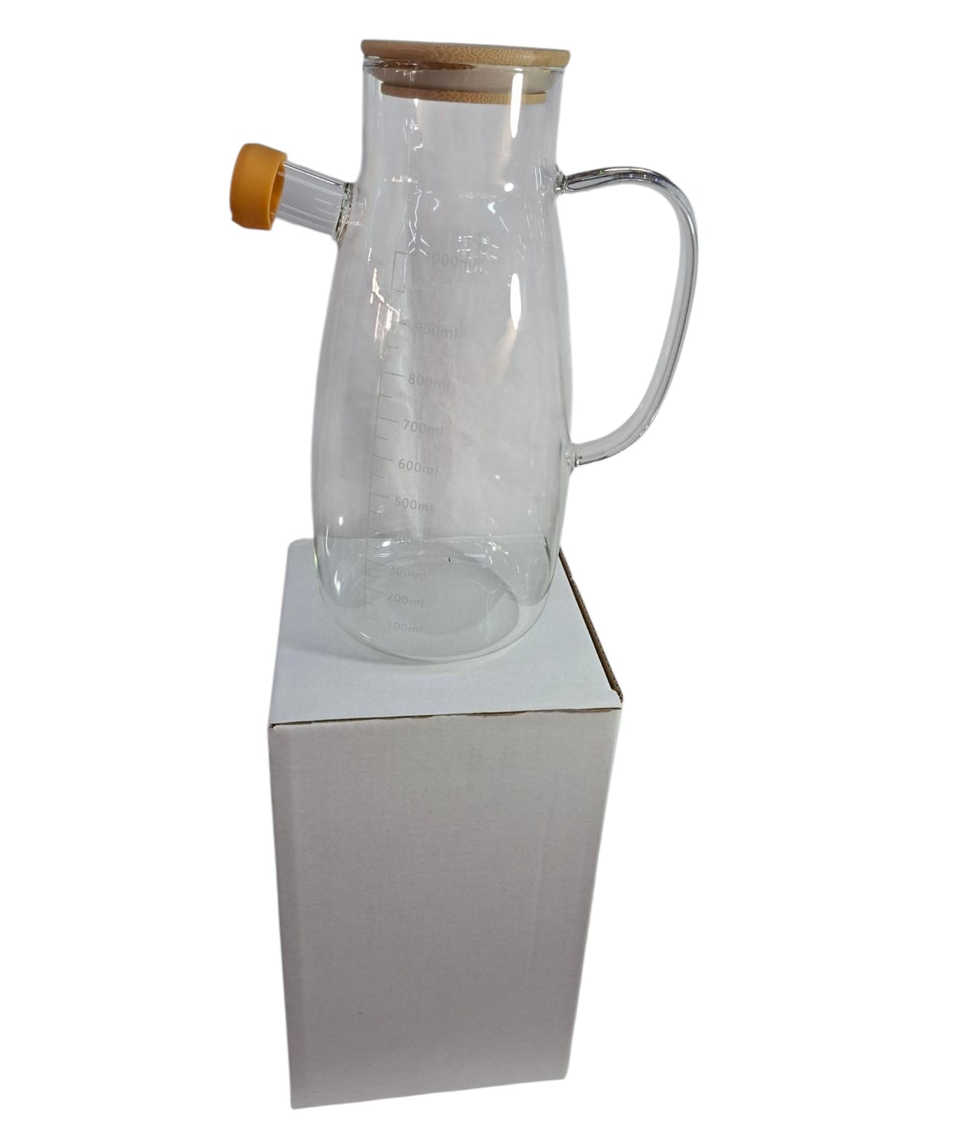 Aceitera vidrio 1lt con tapa bamboo y asa vidrio