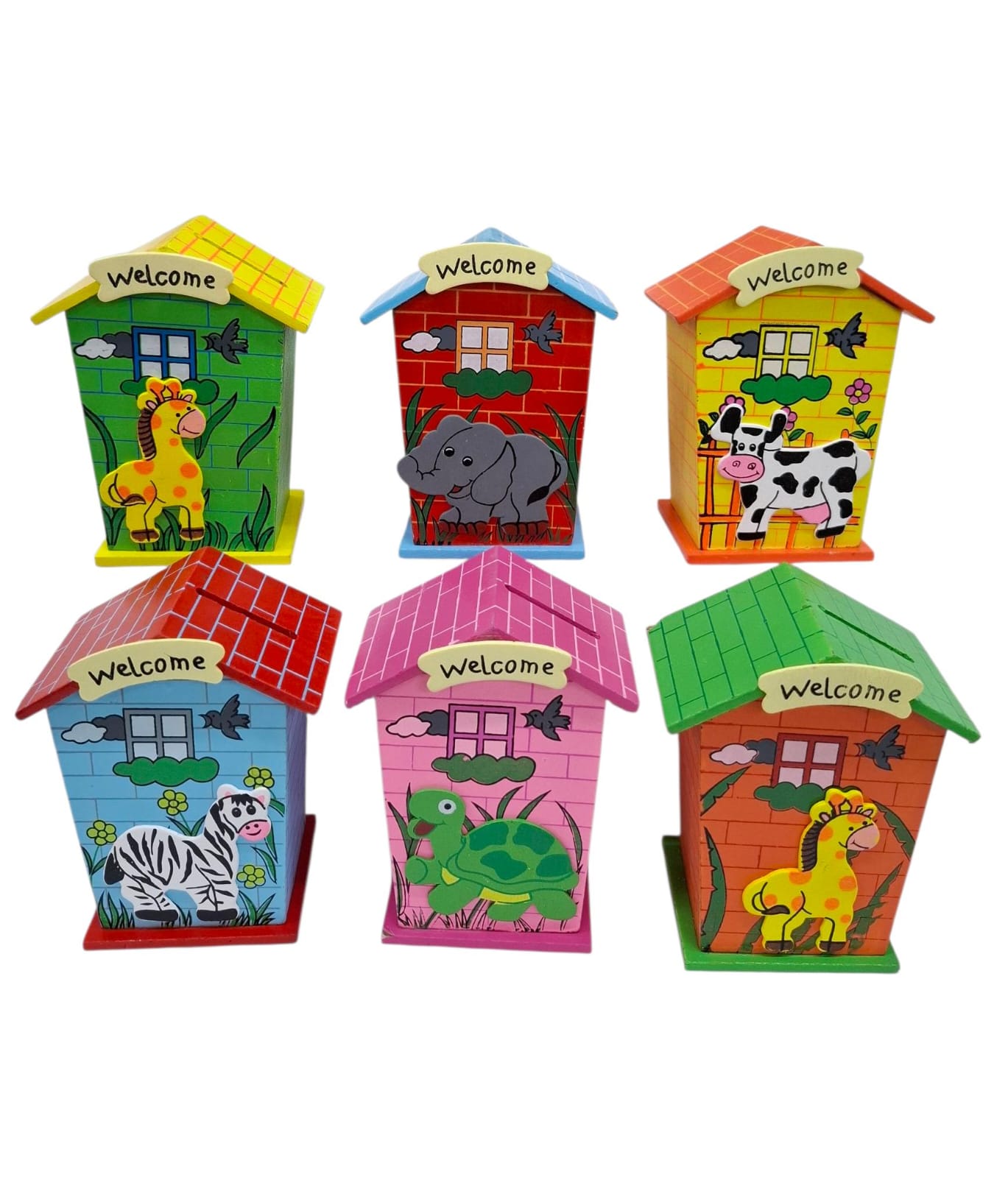 Alcancia casita madera con aplique