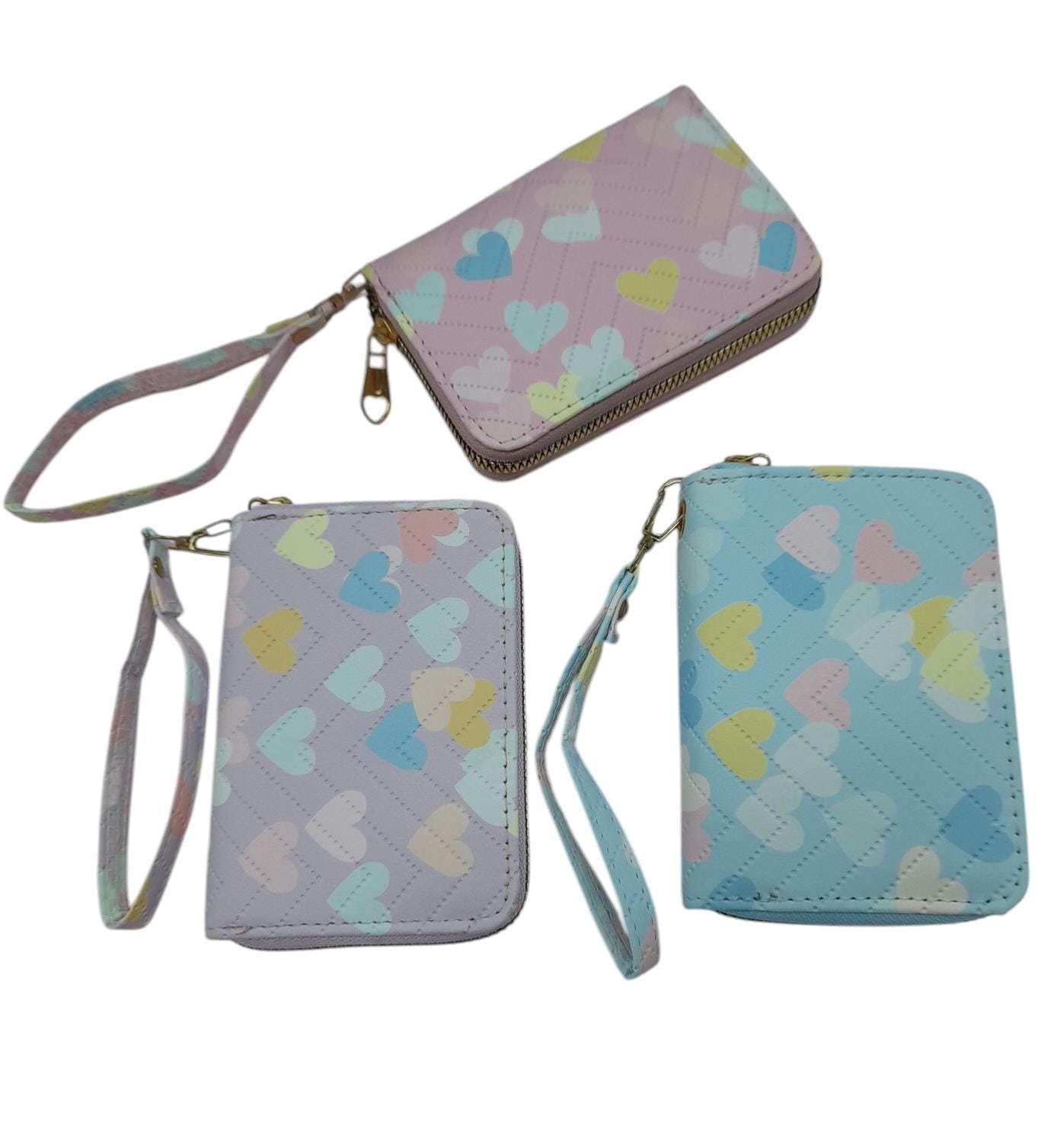 Billetera dama 13 cm con corazones y cierre