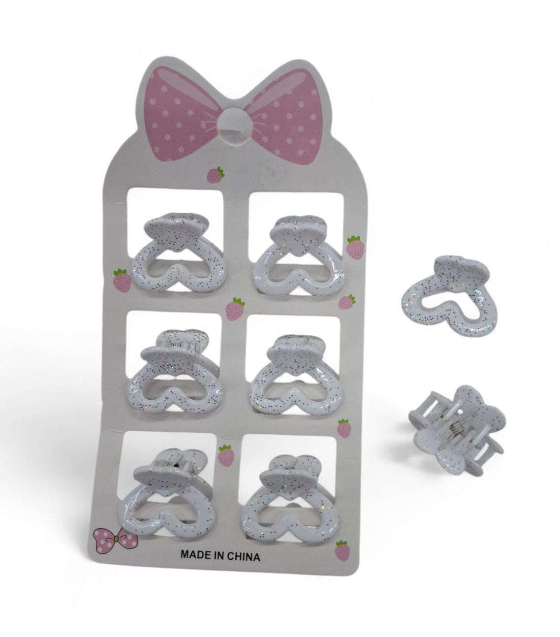 Broches 2 cm corazon blanco brilloso calado x 6u