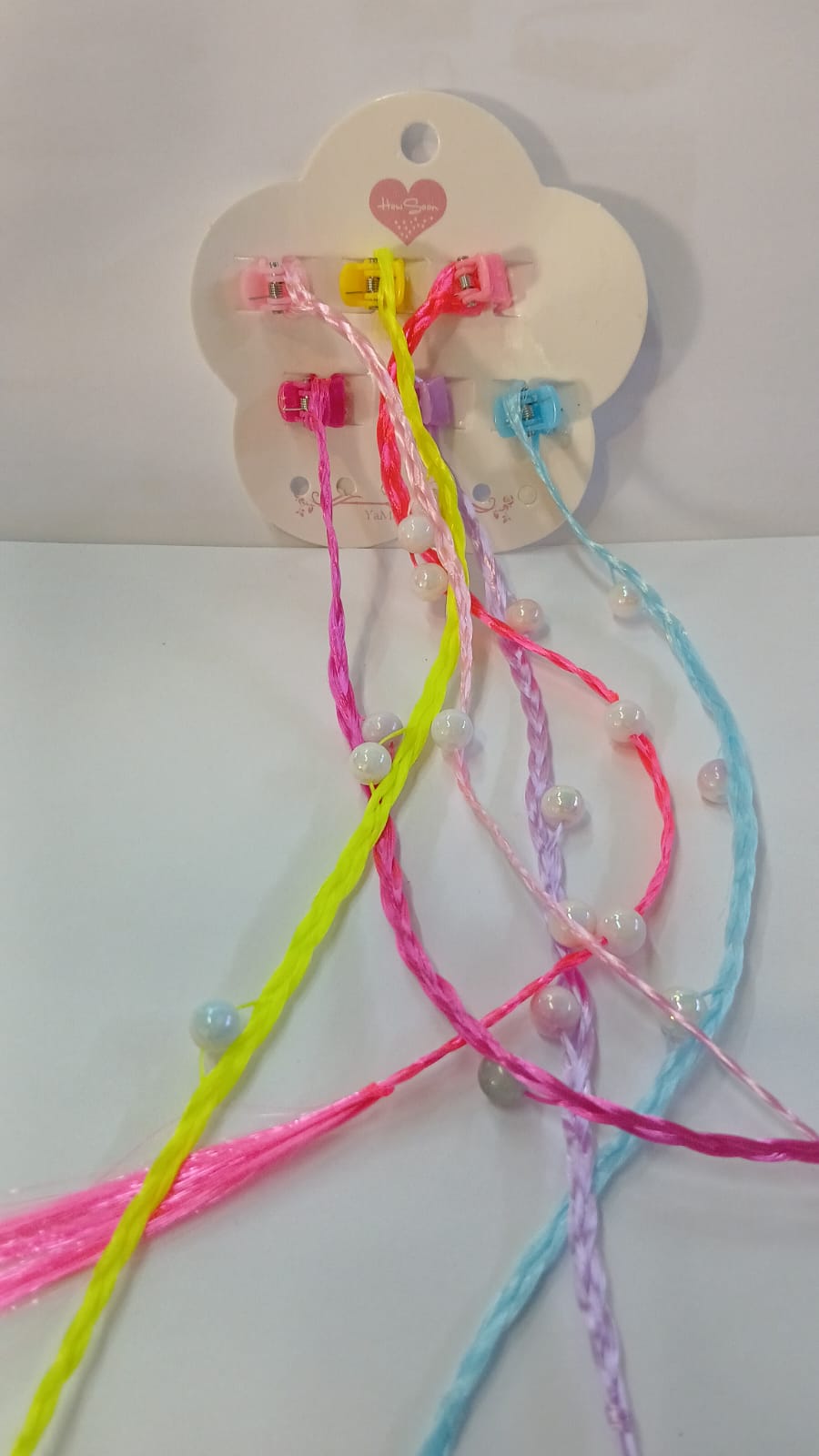 broches mini x 6 extensiones fluor con perlas