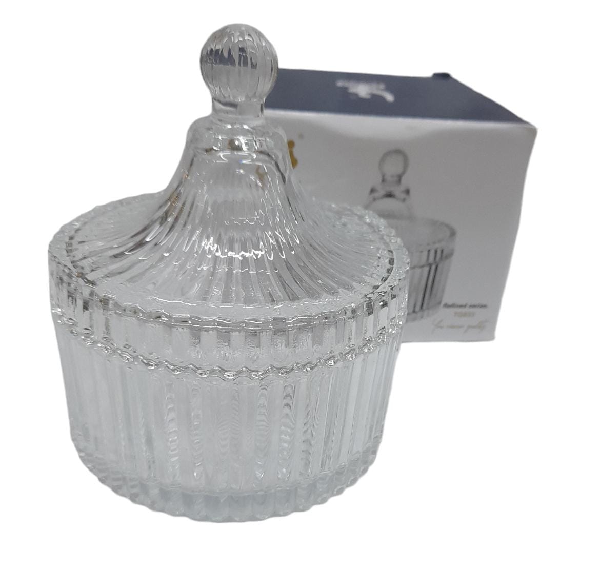 Caramelera de vidrio 11 x 10,5 con tapa en caja