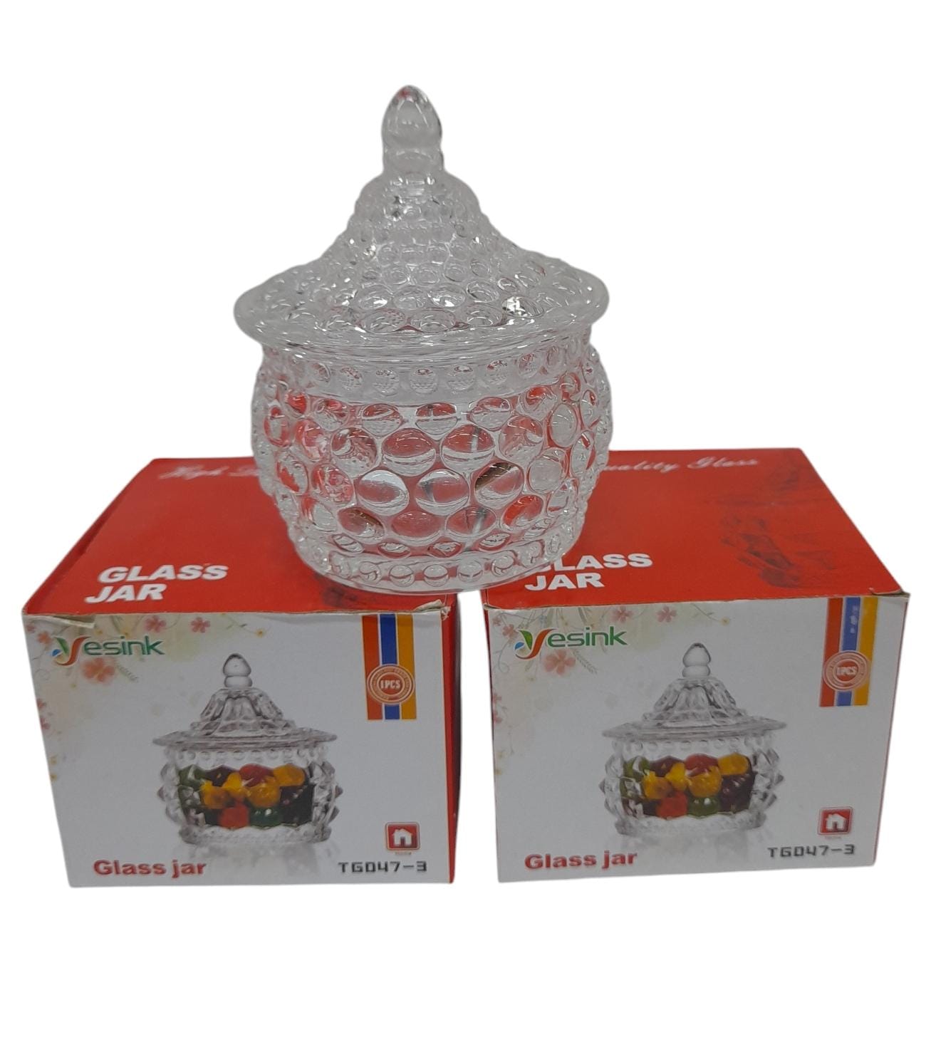 Caramelera de vidrio con tapa 6,6×9,5cm en caja