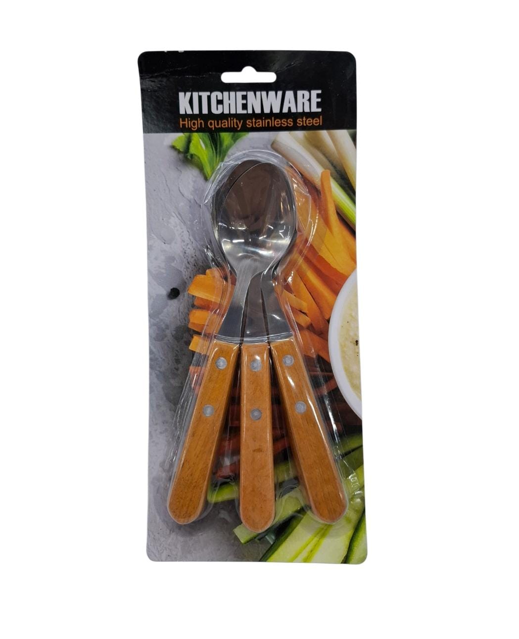 Cucharas x 6u acero mango madera en blister