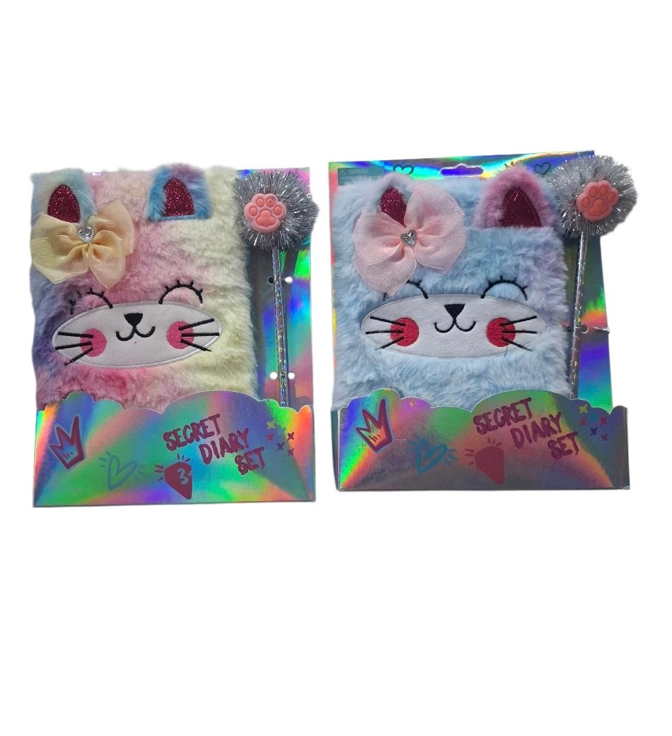 Diario intimo tapa peluche con orejitas + lapicera en caja visora