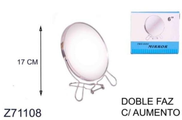 Espejo doble faz con aumento 6″ marco metal