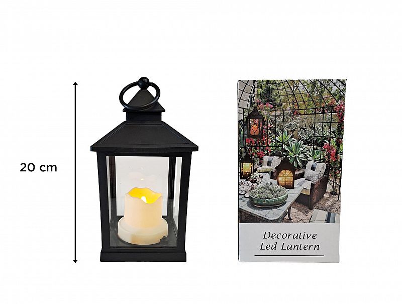 FAROL NEGRO C/VELA A PILA 20CM YW-5633