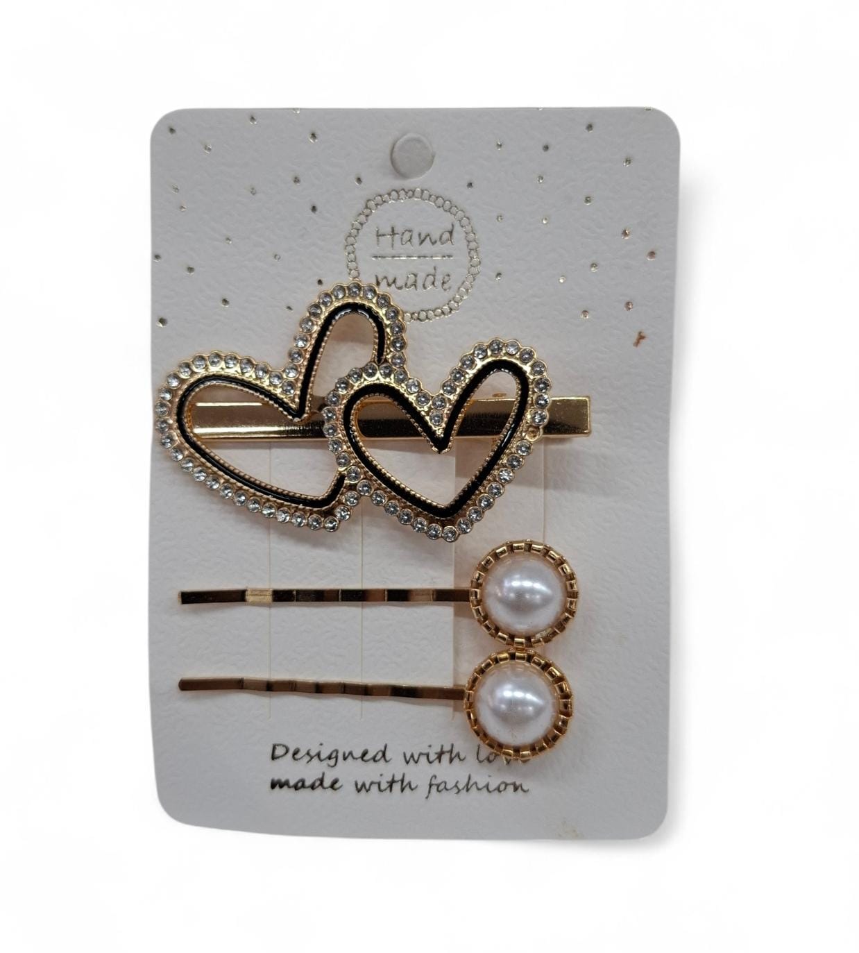 Invisibles x2 + pico con aplique perlas y strass- 12120