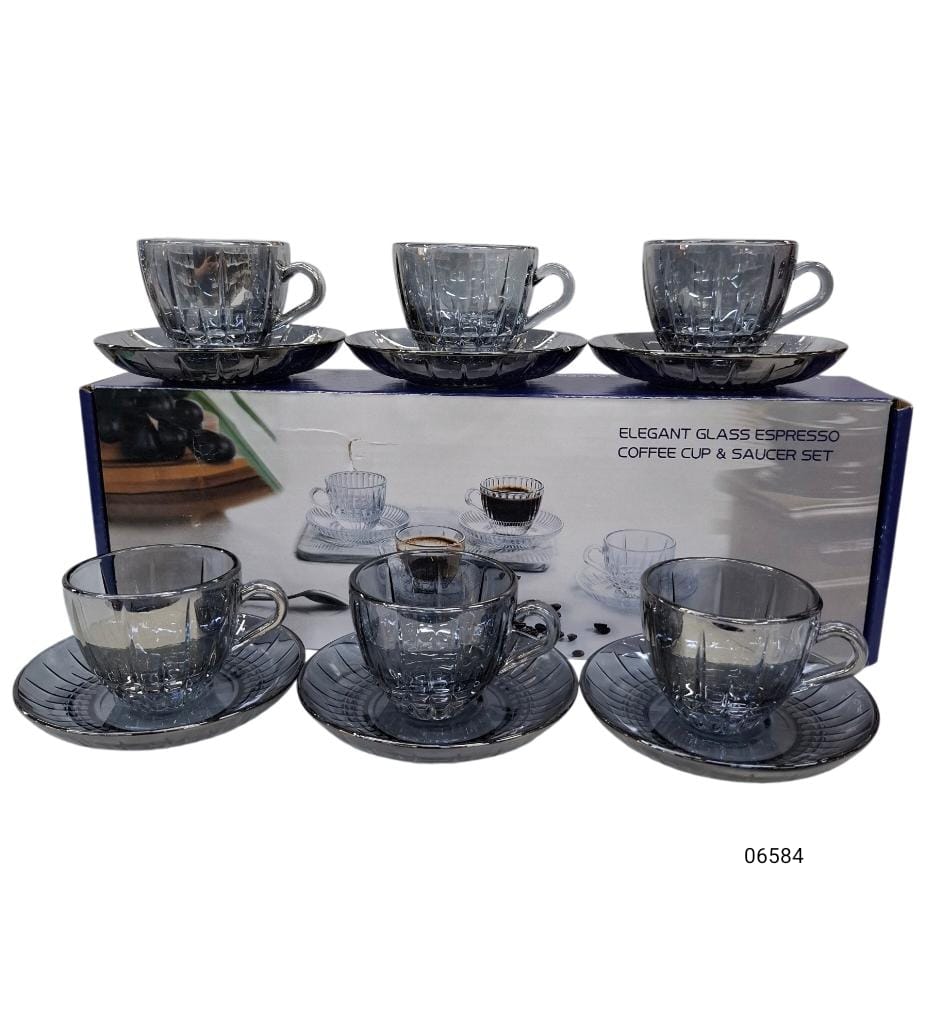 Juego de cafe 12 piezas (6pocillos+6platos) gris labrado 82ml en caja