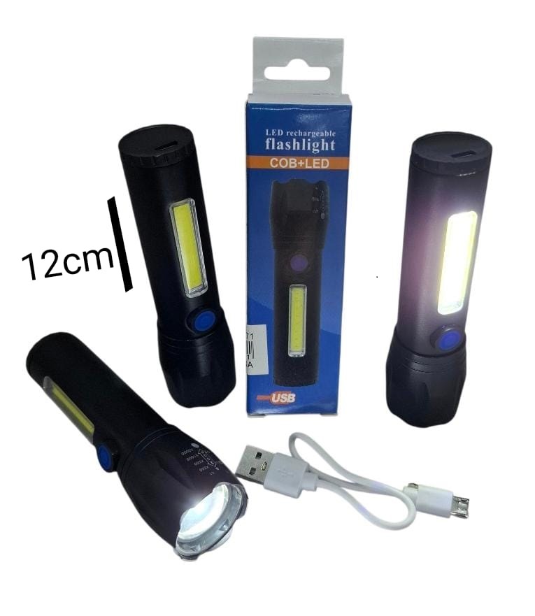 Linterna recargable 12 cm con Zoom y baliza