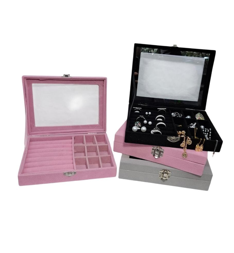 Organizador de bijou con divisiones tapa visora 20x15cm