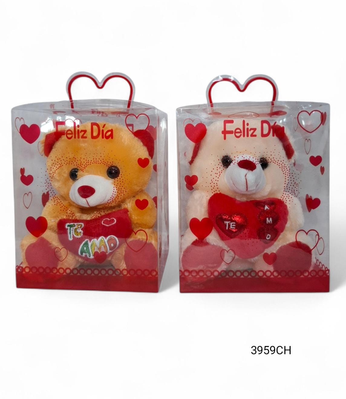 Oso 25 cm con corazon TE AMO en caja PVC FELIZ DIA-