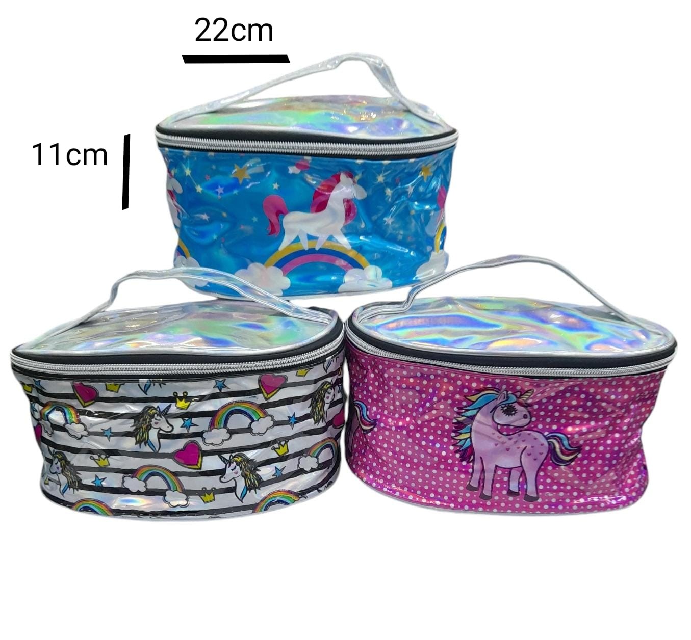 portacometicos oval tornasolado unicornios 22x16x11 con cierre