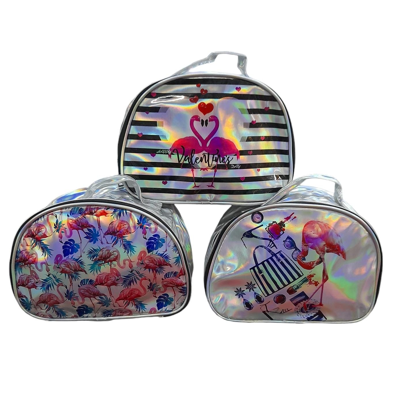 porta cosmetico flamenco tornasolado con cierre