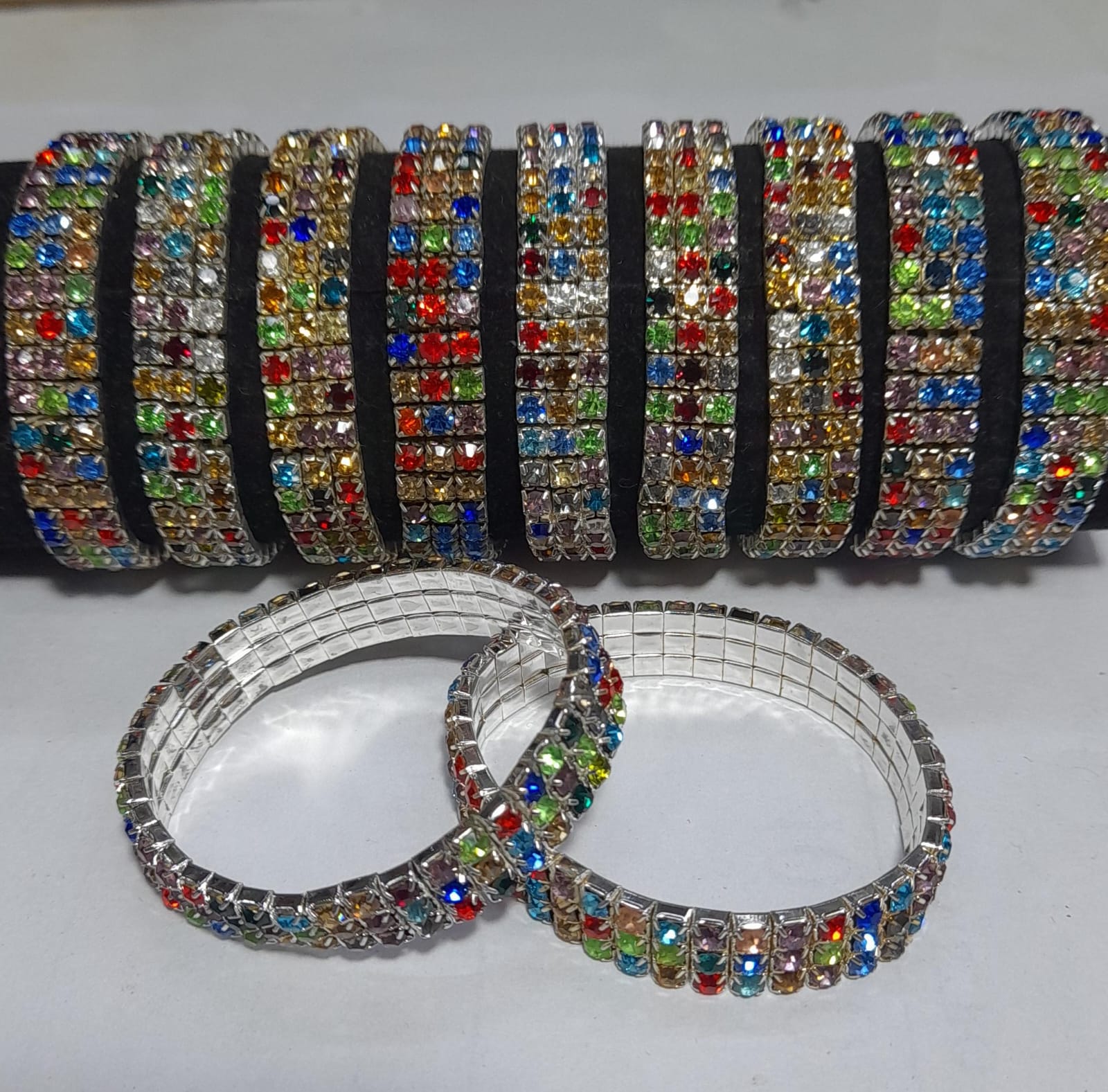 Pulsera elastizada triple linea strass color
