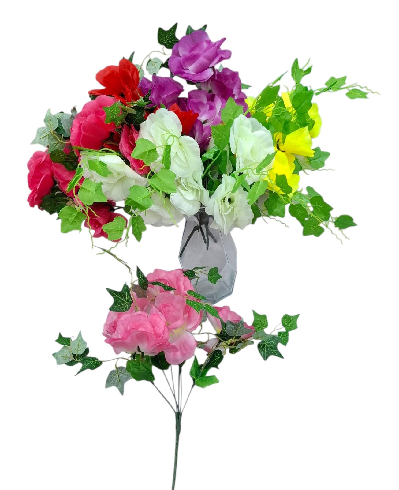 Ramo de 7 flores 35 cm con planta verde hiedra-