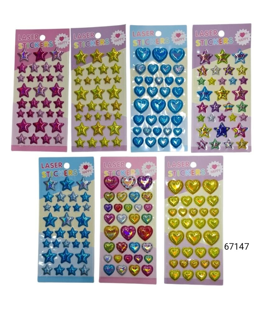 Stickers Corazones-Estrellas con relieve color metalizados