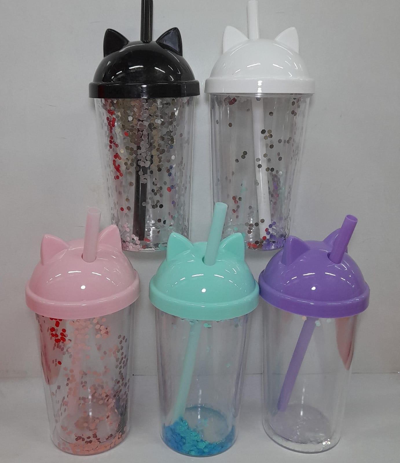 Vaso glitters 350ml con tapa y orejitas y sorbete